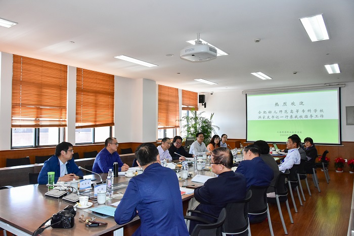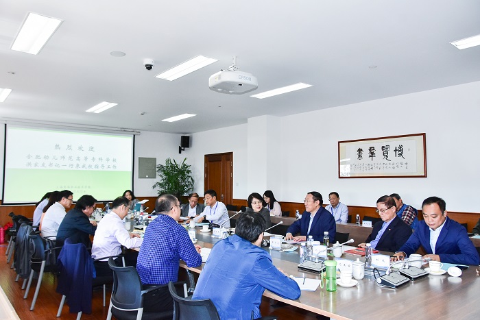 10月13日,合肥幼儿师范高等专科学校洪家友书记一行7人来我校访问交流,校长皋玉蒂、校党委书记万峰等全体校领导、人文与教育学院院长、副院长及相关职能部门负责人参加座谈会。
