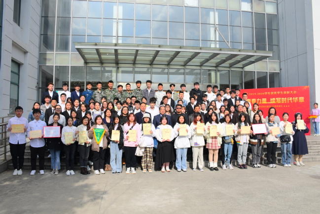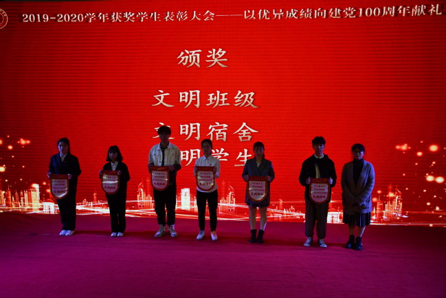 大会在一段热情奔放的新疆舞表演中拉开序幕。在激昂奋进的颁奖音乐和全场师生代表的注目中,院领导分别为2019-2020学年表现优异的集体和个人颁发了荣誉证书,包括获得2019-2020学年“国家奖学金”、“上海市奖学金”、“学院奖学金”以及 “退役学生奖学金” 的学生,获得2019-2020学年“优秀学生”、“优秀学生干部”、“文明班级”、“文明宿舍”和“文明学生”等荣誉称号的集体和个人以及在2019-2020学年学校组织的“一二·九歌会”、毕业衫logo设计比赛、校内勤工助学等各类活动中积极参与并表现优秀的学生。