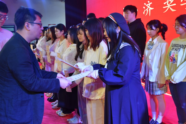 国家奖学金获得者李沛鹏、同·济奖学金获得者龙雨和优秀学生干部获获得者施天成分别代表获奖学生发言。他们表示将继续发挥模范带头作用,不忘初心,戮力前行,将个人追求融入全民族的振兴中,在追求个人价值的同时不负社会的使命与担当。