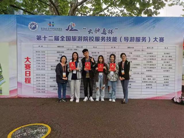 5月13日至16日,旅游管理系系主任华玉和盛蕾老师带队参加了“云驴通杯”第十二届全国旅游院校服务技能(导游服务)大赛。大赛是旅游专业院校中规格最高、影响力最广的专业赛事之一。本届比赛共有来自全国各地的345支参赛队伍、1037名选手报名参加。经过理论考核、模拟导游、才艺展示等三个环节紧张激烈的比拼,我校商学院旅游管理系参赛队伍获得团体三等奖、优秀组织奖,参赛选手葛潍嘉、白雪获得高等院校组普通话导游服务三等奖,张思佳、曾碧霞获得高等院校组英语导游服务三等奖。