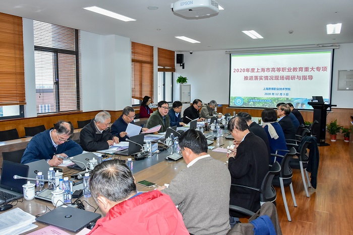 12月3日下午,上海市教科院职教所副所长张晨、上海市教委高教处原正处级调研员徐国良、上海杉达学院副院长娄斌超等专家组一行7人莅临我校,对2020年度学校一流专业建设、高本贯通培养试点项目、专业教学资源库、教学成果奖和教材建设等上海高职院校重大专项推进落实情况进行调研和指导。校长皋玉蒂、副校长张学龙、姚大伟、沈小平、崔智涛以及相关院系负责人、职能部门负责人参加会议。