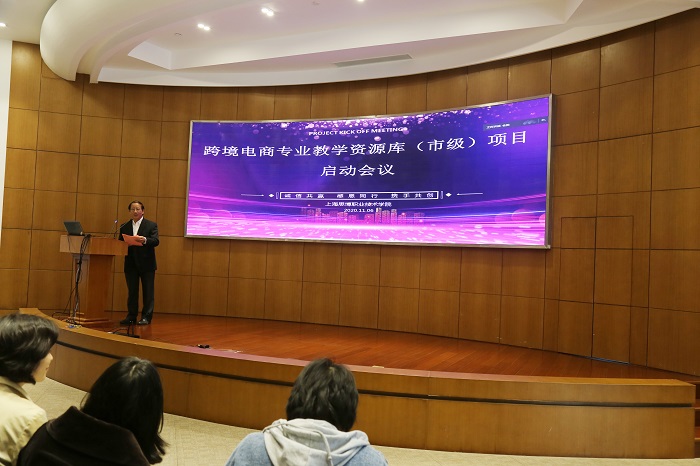 11月6日,跨境电商专业教学资源库(市级)项目启动会议在我校学术报告厅成功举行,上海市教育委员会高等教育处副处长赵坚受邀线上致辞。上海电子商务促进中心党委书记、主任李悦、上海跨境电子商务行业协会秘书长夏世锋、立信会计出版社社长赵新民、复旦大学电子商务研究中心副主任黄岳、高教出版社在线教育发展中心副主任曹喆等兄弟院校的校长、院长以及来自本市近30所本科、高职、中职院校、行业企业专家学者们、专业负责人及骨干教师150余人出席会议。副校长姚大伟主持会议。