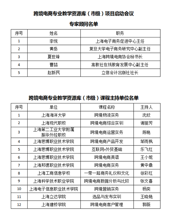 会议中宣布了5位专家顾问名单和12门课程主持单位名单,并颁发聘书。接下来,复旦大学电子商务研究中心副主任黄岳、上海电子商务促进中心党委书记、主任李悦、教出版社在线教育发展中心副主任曹喆分别就当前跨境电商的热点动态、行业结构性人才短缺现象分析、智慧职教资源库建设三个主题作了主旨报告。最后环节,我校国商学院副院长朱惠茹做关于跨境电商专业教学资源库项目报告,介绍了本项目的建设规划、建设思路、建设要求。