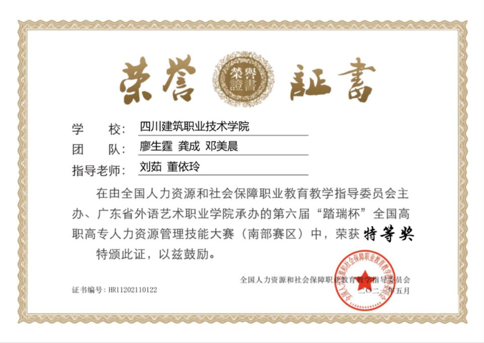 经过一天的激烈角逐,经济管理系教师刘茹、董依玲指导的人力资源管理专业2019级学生廖生霆、邓美晨、龚成在竞赛中熟练运用专业知识和技能,精诚合作、运筹帷幄、科学决策,荣获特等奖,顺利晋级2021年10月的全国总决赛。