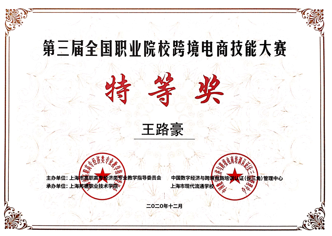 12月26日,由上海市高职高专经济类专业教学指导委员会、中国数字经济与跨境电商培训认证(长三角)管理中心主办,上海邦德职业技术学院、上海市现代流通学校承办,上海市宝山区职业教育集团、上海跨境电子商务生态联盟、上海电子信息职业技术学院、上海百联职业技术学校协办的“第三届全国职业院校跨境电商技能大赛”在上海邦德职业技术学院圆满收官!。