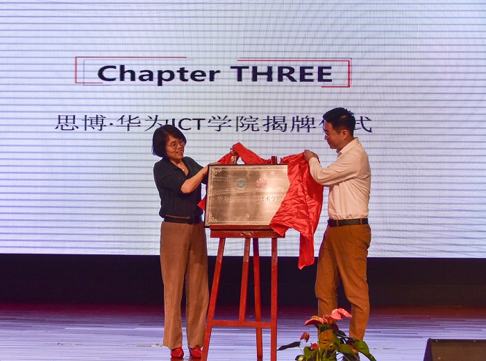 (思博校长皋玉蒂女士和华为上海政企业务部副总经理景中岳先生共同揭牌)