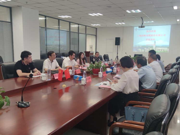 9月24日上午,上海起帆电缆股份有限公司董事长周桂华、党支部书记陈永达、行政副总章尚义、人力资源部长钱军玲、招聘专员朱婉一行莅临我校,就双方建立校企战略合作关系等事宜展开讨论。校长陈晓斌教授、合作交流处处长王凌、就业中心主任关睿、经管学院院长张炳达、经管学院党总支副书记郭骏参加会议。