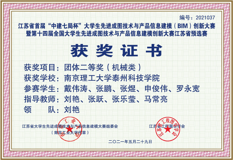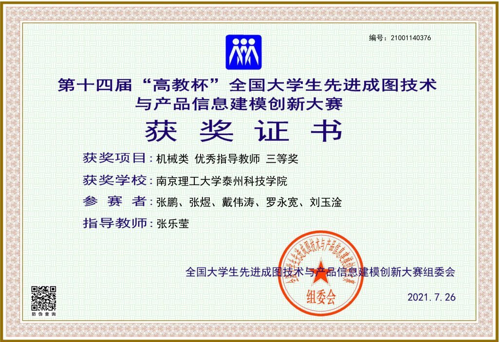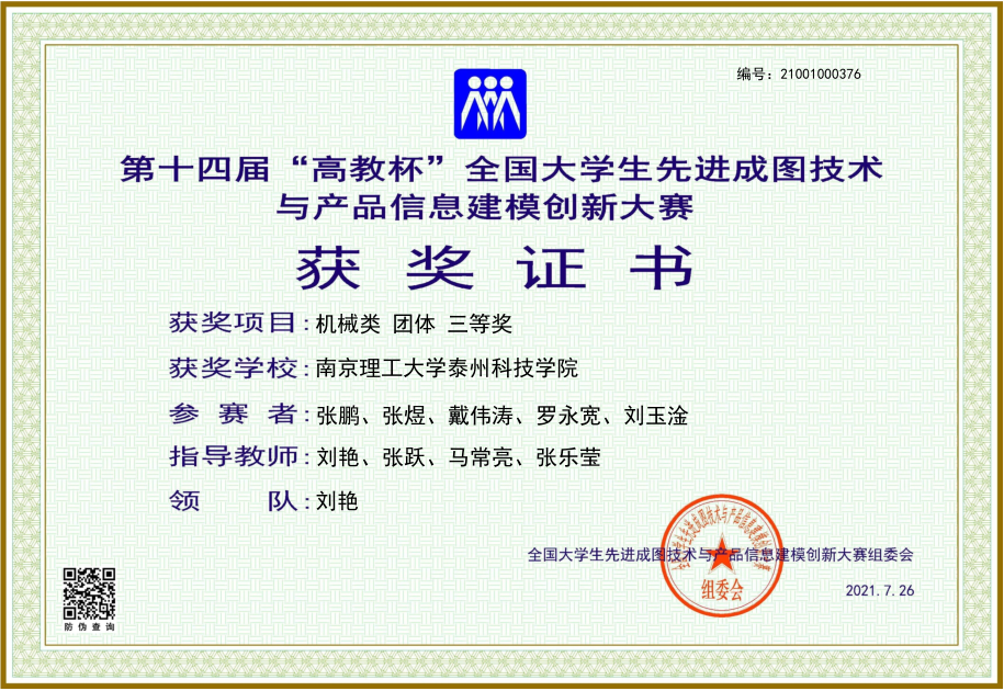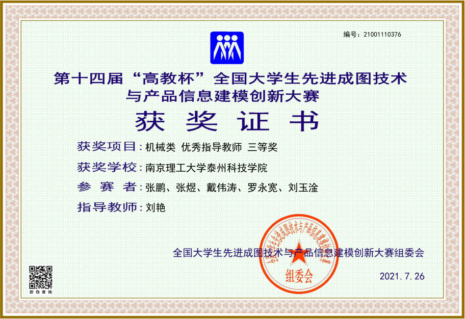 2021年7月24 日-26日,第十四届“高教杯”全国大学生先进成图技术与产品信息建模创新大赛在西南交通大学成功举办。大赛共吸引了来自全国30多个省、551所高校的6743名选手参赛,其中双一流高校超过100所。我校学子创该项赛事历史最好成绩,荣获省赛团体二等奖1项;国赛团体三等奖1项、个人全能奖三等奖2项、优秀指导老师的好成绩。