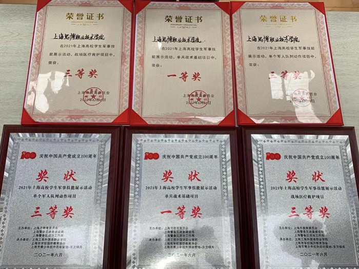 6月26日,在由上海市教育委员会、上海警备区战备建设局和上海警备区政治工作局主办的“2021年上海高校大学生军事技能比武展示”竞技中,我校派出14名参赛学生参加其中三个项目均获奖,分别荣获了“单兵战士基础项目”一等奖,“战场医疗救护项目”“单个军人列队动作项目”三等奖的好成绩。