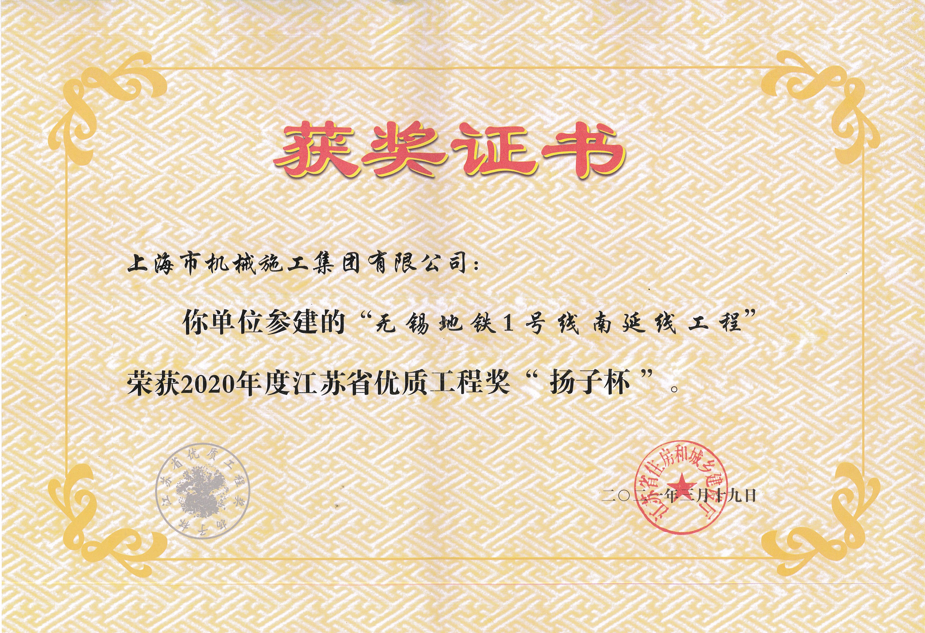 近日,传来喜讯,无锡地铁1号线南延线工程获得江苏省住房和城乡建设厅授予的2020年度江苏省优质工程奖“扬子杯”。