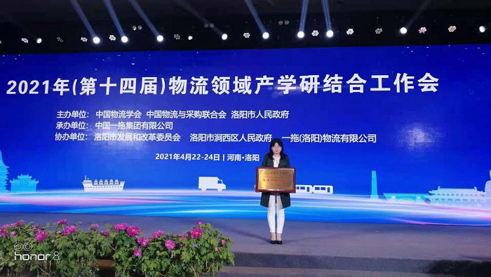 2021年物流领域产学研结合工作会(第十四届)于4月22-24日在河南省洛阳市召开,大会表彰了2020年度中国物流学会优秀产学研基地,我校国商学院物流产学研基地再次获评“优秀产学研基地”称号,学院物流专业骨干教师姚翠平教授代表学院出席大会,并领取奖牌。